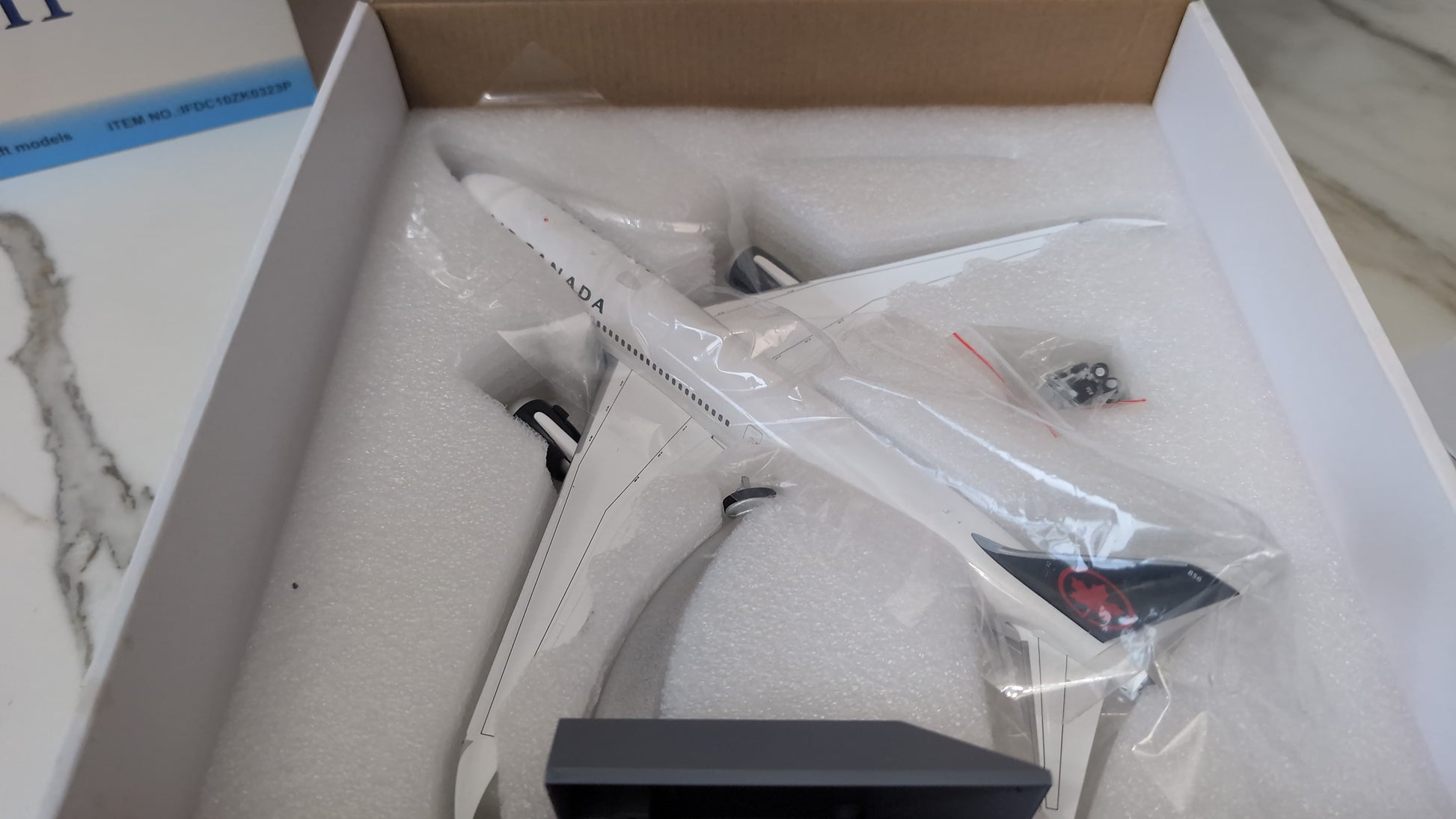 Comes with Landing Gear and a stand.